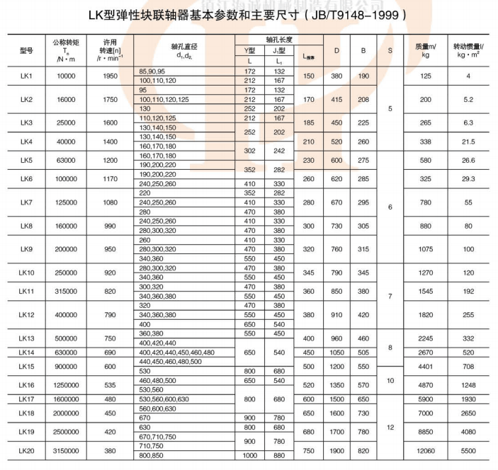 LK彈性塊聯軸器是以橡膠為彈性元件材料,無扭轉傳動間隙,易于現場調節剛度的彈性聯軸器,具有補償兩軸相對偏移以及減振、緩沖性能,節能,無噪聲,不用潤滑,更換彈性件(易損件)時主機半聯軸器用作軸線移動(對于重型機械設備此特點尤為重要),安裝維護簡便,使用壽命較長,根據需要通過改變橡膠配方(主要改變硬度)可以調整聯軸器的扭轉剛度。適用于聯接兩同軸線大中功率、振動沖擊較大的軸系傳動,例如冶金機械、礦山機械等。原來的標準(ZBJ19029-90)存在外徑尺寸大、質量大等缺點,改進后的新標準(JB/T9148-99代替ZBJ19029-90)新結構不僅保留了減振、緩沖性能好的特點,而且縮小了外徑尺寸,減輕了質量和轉動慣量,提高了許用轉速,經過幾年的工業應用,優點十分明顯,已成原結構的更新換代產品。新標準許用轉速平均提高28%,最大外徑平均縮小36%,轉動慣量平均減小70%,質量平均減輕57%。