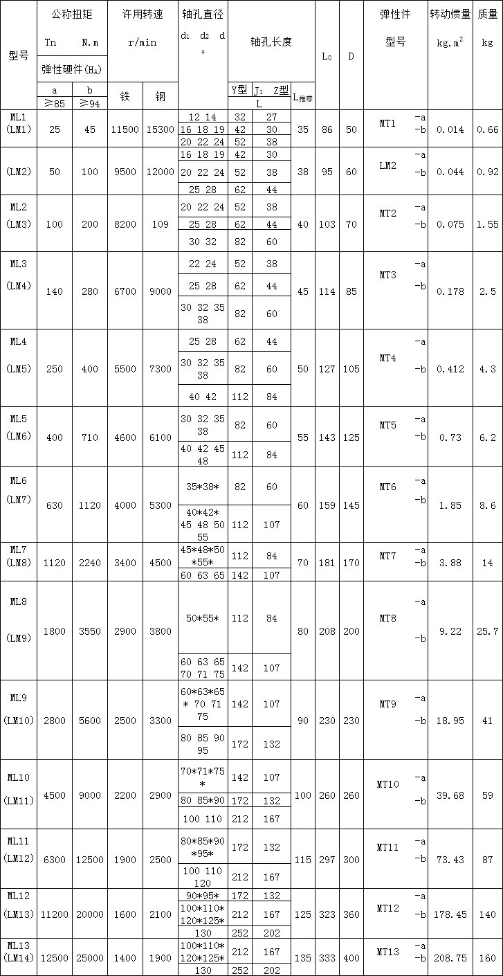 MLS(LMS)梅花彈性聯(lián)軸器 特點(diǎn)及應(yīng)用場合:具有補(bǔ)償兩軸相對偏移、減振、緩沖性能、徑向尺寸小,結(jié)構(gòu)簡單、不用潤滑、承載能力較高,維護(hù)方使、更換彈性元件需軸向移動 (MLS型除外),適用于聯(lián)接同軸線,起動頻繁,正反轉(zhuǎn)變化,中速、中等轉(zhuǎn)矩傳動軸系和要求工作可靠性高的工作部位。不適用于重載、低速及軸向尺寸受艱制,更換彈性元件后兩軸對中困難的部位。